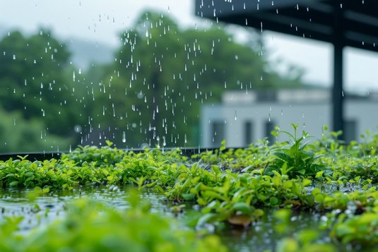 Ein Gründach nimmt einen Teil des Regenwassers auf, speichert es in der Vegetations- und Substratschicht und gibt es verzögert wieder ab. Das hat gleich mehrere Vorteile: