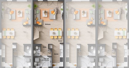 Ein Reihenhaus ist eine echte Alternative zum Einfamilienhaus. Auf rund 97 Quadratmetern Wohnfläche schenkt Ihnen das Reihenhaus FürEuch ein Zuhause für die ganze Familie. Im Mittelpunkt steht dabei der lichtdurchflutete Wohnbereich mit Zugang zum Garten.
