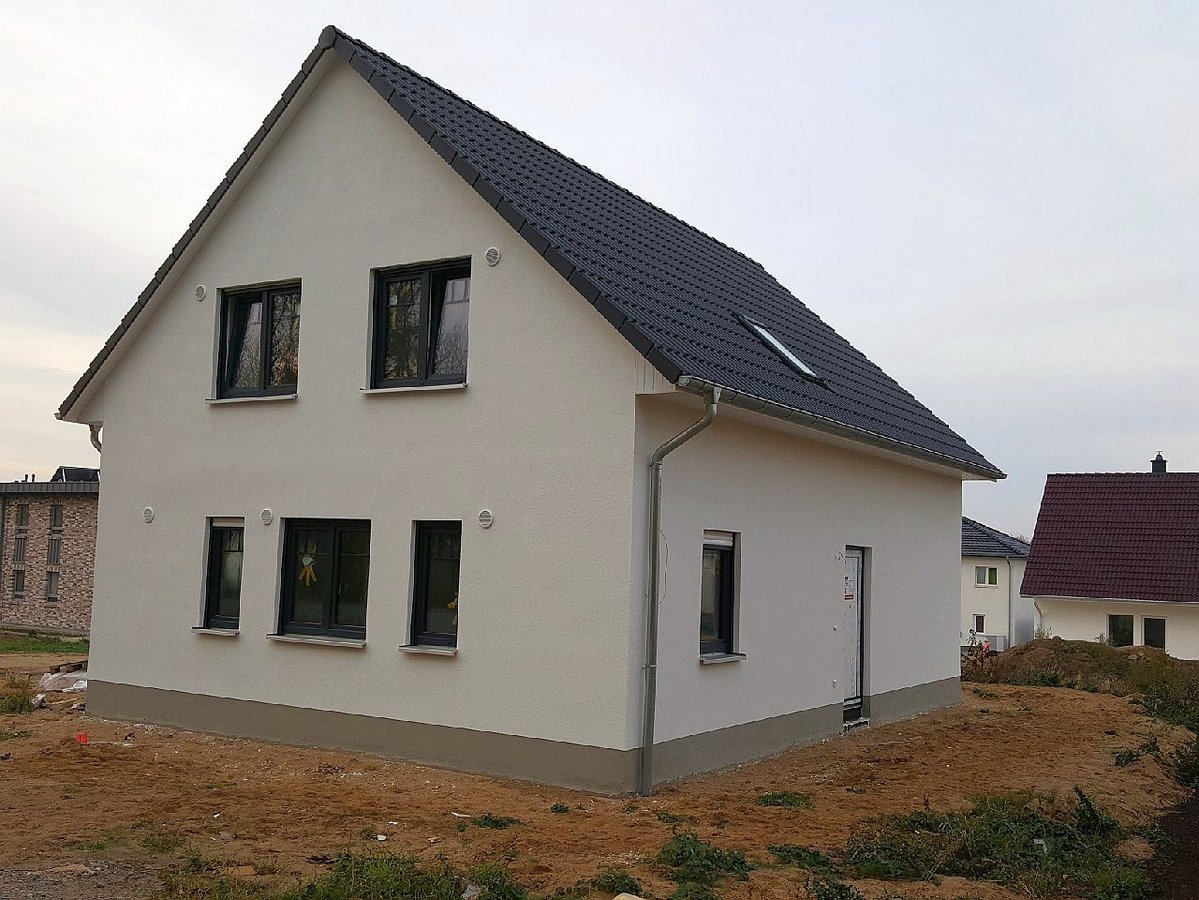 Das großzügige Haus mit dem schönen Satteldach überzeugt mit viel Platz und einem variablen Grundriss. Das Wohnzimmer schenkt genügend Raum zur Erholung, die sich anfügende Essecke wird schnell zum gemütlichen Familienmittelpunkt mit direktem Zugang zur Küche. Die hohen Fenster fangen das Tageslicht besonders gut ein. Jeder Raum im Haus wirkt offen und freundlich. Ein Arbeits- oder Kinderzimmer und das Gäste-WC runden das Erdgeschoss perfekt ab.